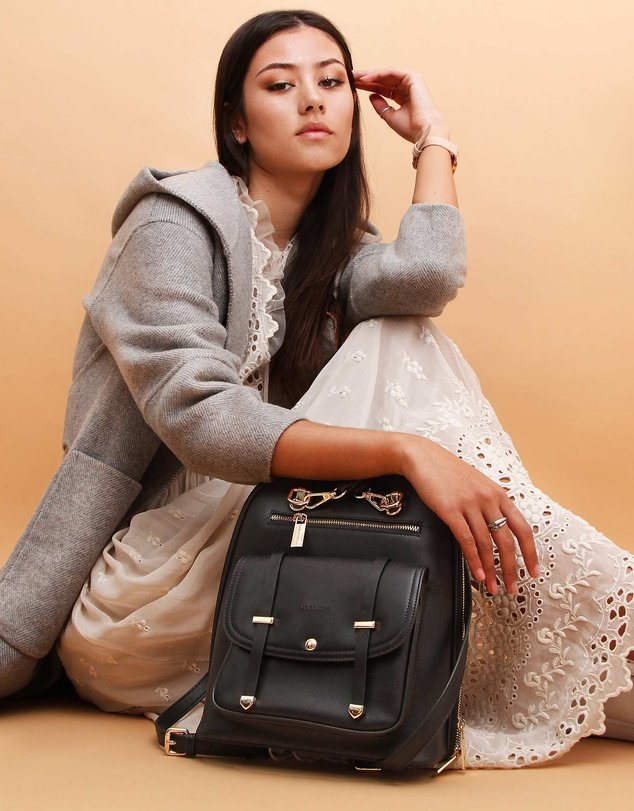 Function meets form with the 5th Ave Leather Backpack by Belle & Bloom. Made from top quality leather it features a large zipped compartment with multiple internal and external pockets for easy organisation. It will fit your tablet, books and water bottle. Gold-toned hardware accentuates beautiful crossed shoulder strap design. It converts from backpack to shoulder bag in seconds. A true modern statement!