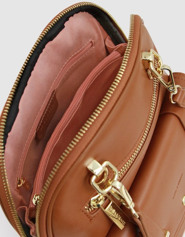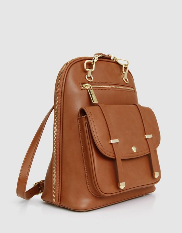 Function meets form with the 5th Ave Leather Backpack by Belle & Bloom. Made from top quality leather it features a large zipped compartment with multiple internal and external pockets for easy organisation. It will fit your tablet, books and water bottle. Gold-toned hardware accentuates beautiful crossed shoulder strap design. It converts from backpack to shoulder bag in seconds. A true modern statement!