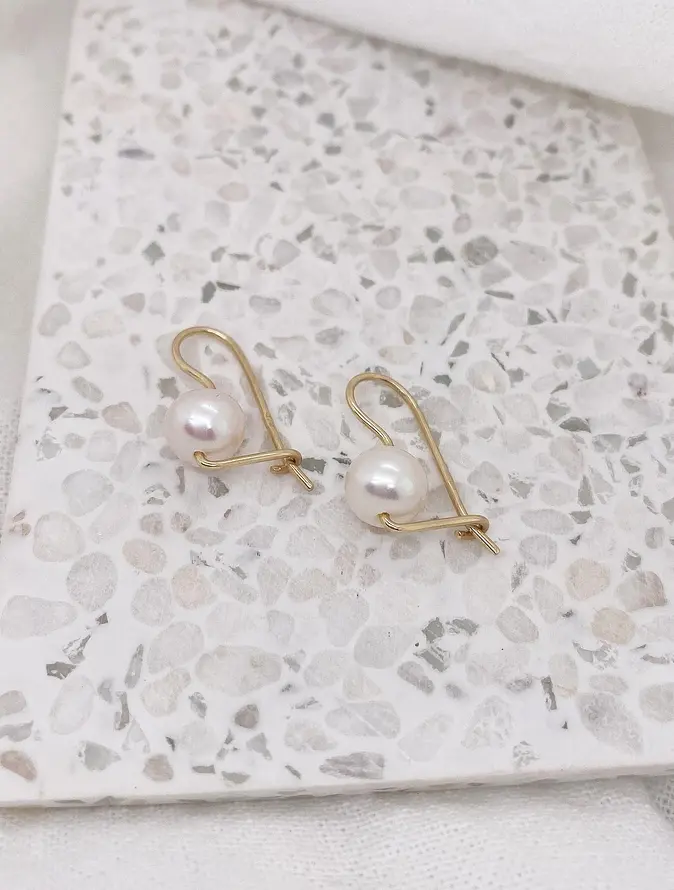 9ct Yellow Gold Euroball Design 8mm Freshwater Pearls Designer Earrings