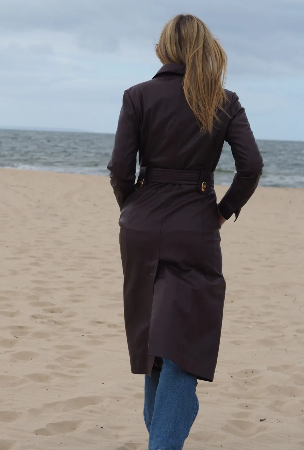 Gold turn lock fasteners add a touch of glamour to this classic trench