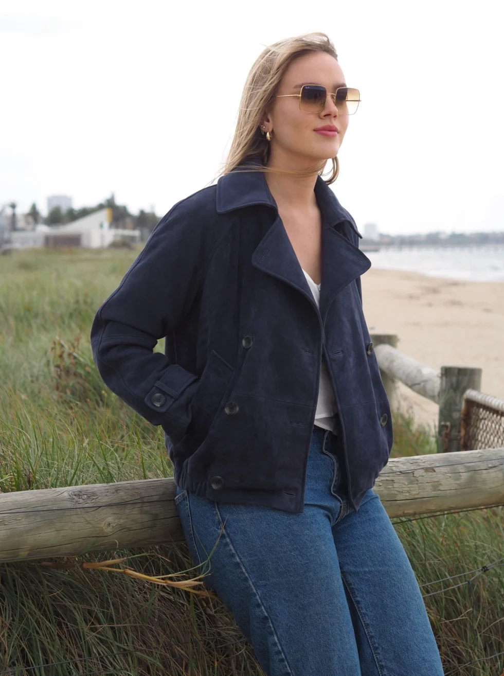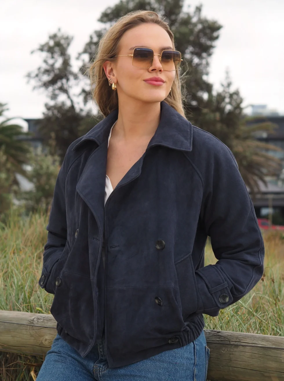 Luxurious suede makes this double breasted jacket the ideal piece to wear casually on a cold weekend or throw it over a dress for those cooler summer nights