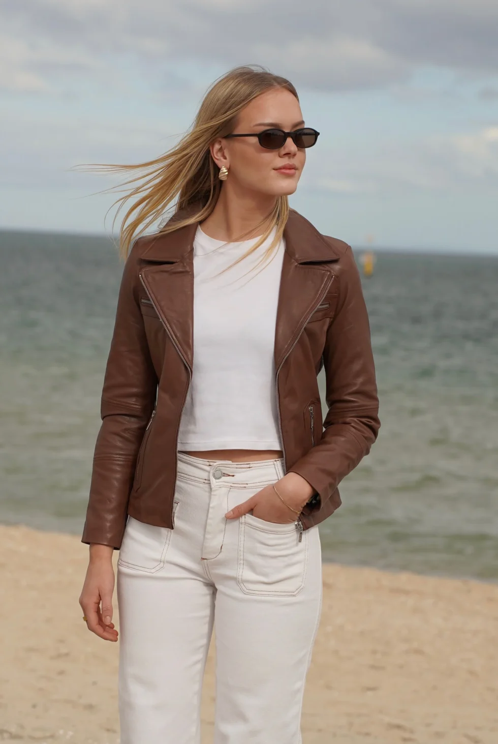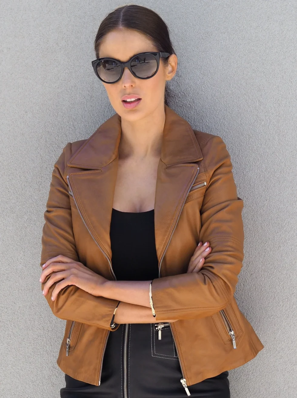 - A classic single breasted revere collar jacket that is secured with a silver metal zip closure