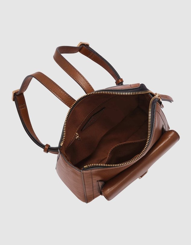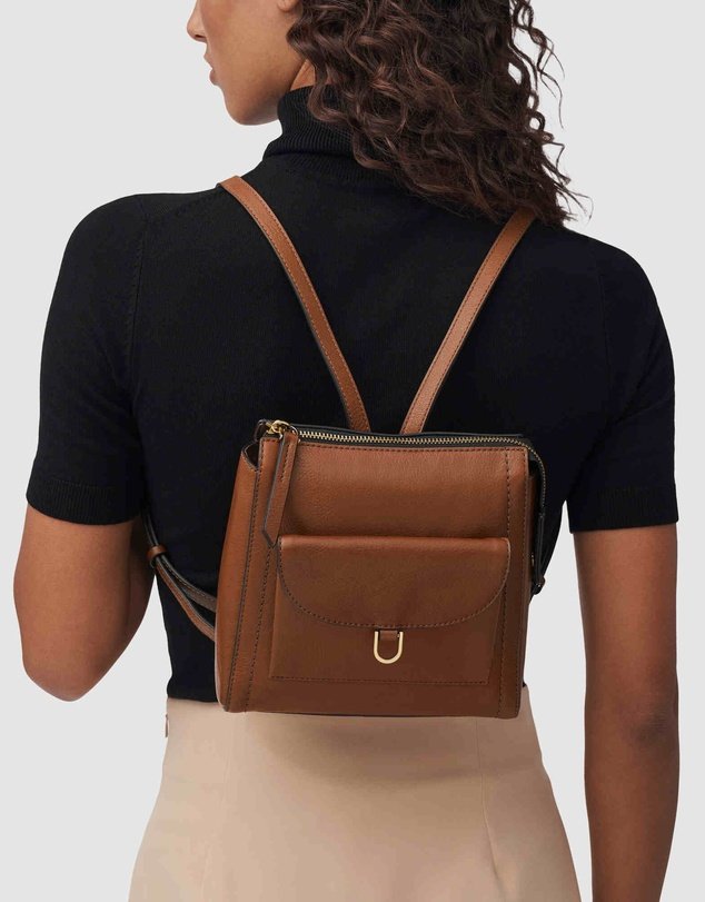 This LiteHide™ leather mini backpack features 1 zipper pocket, 1 slide pocket, 1 front flap pocket with magnetic snap and 2 backpack straps.