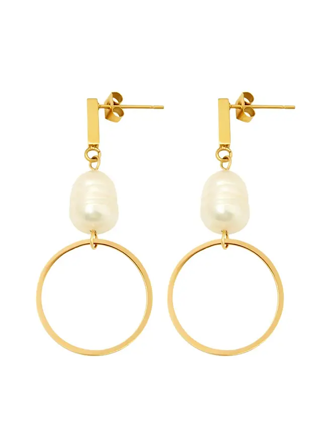 - In a classic stud earring style, it features an open circle ring at the end of the drop for a touch of modern class