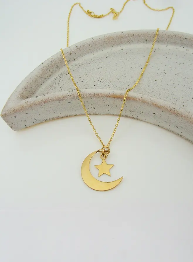 Wear this Crescent Moon and Star Necklace as a reminder of the mysterious beauty that resides in the universe, and let its celestial charm guide you on a journey filled with dreams and aspirations.