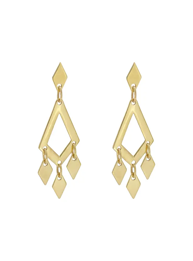 Made in a comfortable light weight design these 9ct Yellow Dangly Earrings feature shimmer and shine with the diamond shaped detailing.